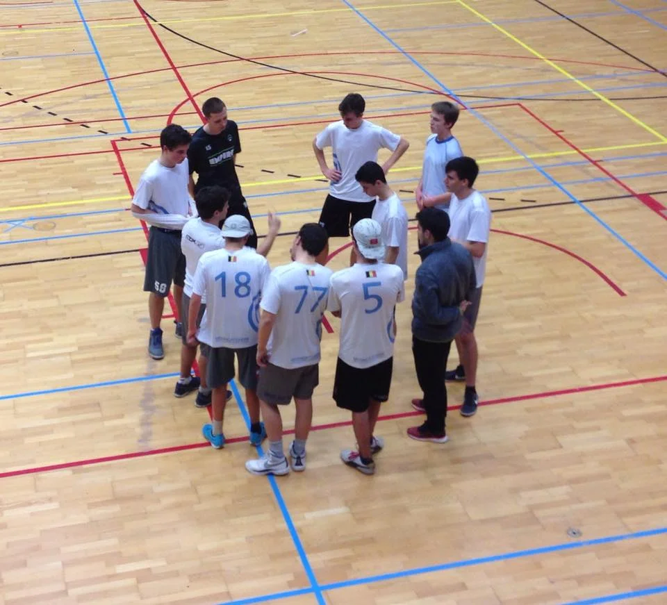 Pour ce 1er Championnat de Belgique Junior Indoor officiel de l'histoire, pas moins de 5 équipes Mooncatchers étaient inscrites: 2 équipes en U14 (né en 2003 ou après), 2 équipes en U17 (né en 2000 ou après) et 1 en U19 (1998 ou après). Christophe inscrivant en plus une nouvelle équipe de son école à Ixelles, AES, c'est plus de 50 jeunes bruxellois fanatiques de frisbee qui allaient être présents ce dimanche ! Nous rêvions secrètement aux 3 titres…